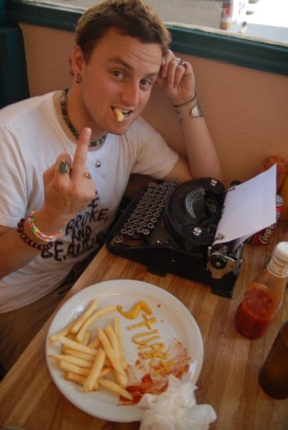 Me at Golden Coffee in 2006 during the photoshoot for my 2007 book Broke-Ass Stuart’s Guide to Living Cheaply in San Francisco. This classic pic is by Victoria Smith.