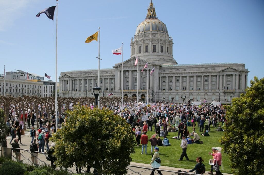 San Francisco, CA, April 5, 2025: This afternoon, over 10,000 people joined the Hands Off rally at San Francisco’s Civic Center organized by Indivisible San Francisco and 50501, one of over 1,300 events in all 50 states and Washington, D.C. representing the largest single day of action since Donald Trump was sworn in for a second term. With Trump/Musk and congressional Republicans doubling down on their agenda of gutting Medicaid and essential services, everyday Americans are sending a clear message: take your hands off our healthcare, our Social Security, our civil rights, our freedom, and our education.