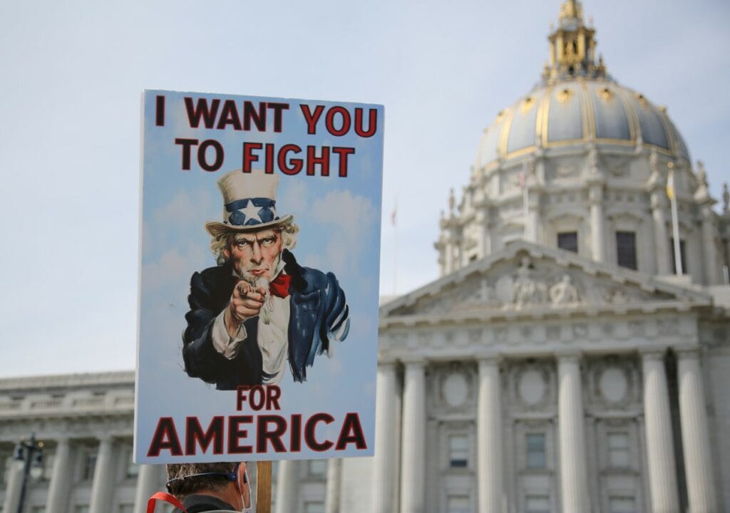 Alex U. Inn, co-founder of the People’s March, encouraged attendees to come to a rally protesting fascism next Saturday. “We can’t stop this movement,” the activist said. “We have to be in the streets as much as possible.”