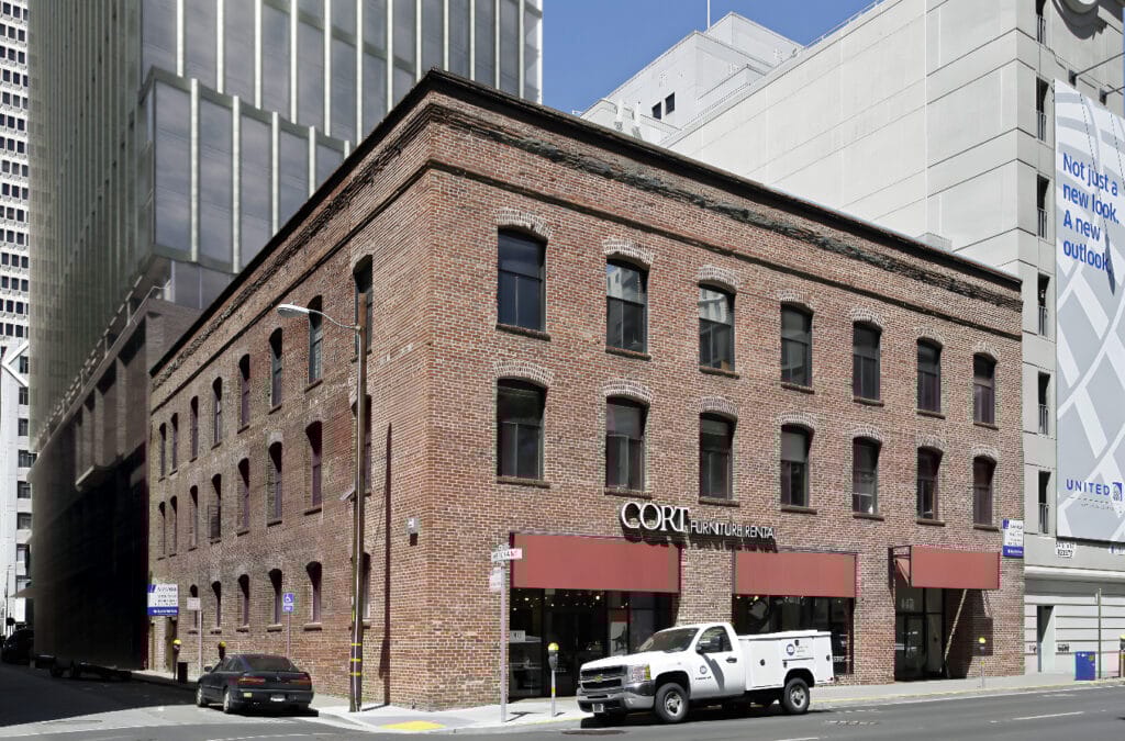 Woody LaBounty, President and CEO of SF Heritage, describes the brick building as “a survivor right on the edge” of the older Financial District.