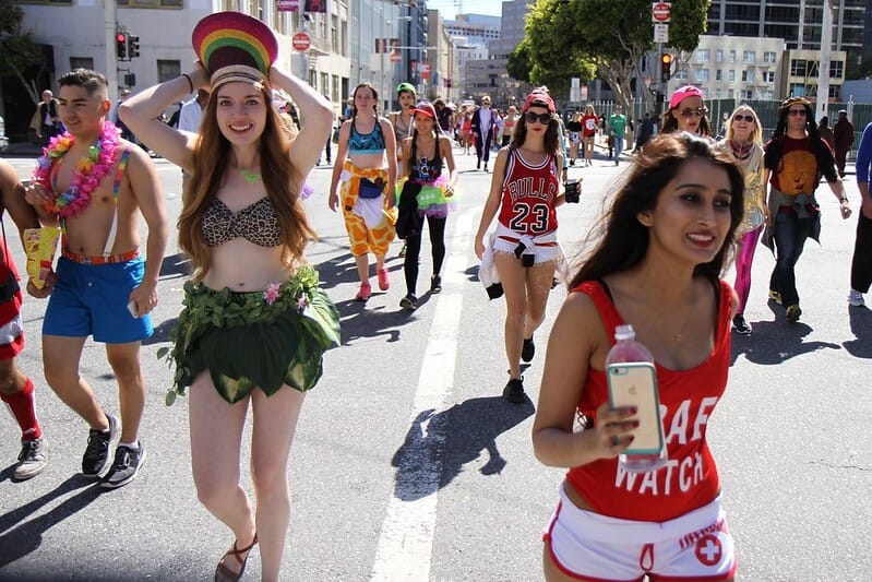 People love to party in public in San Francisco. Photo of Bay to Breakers by Kevin Edwards via Flickr