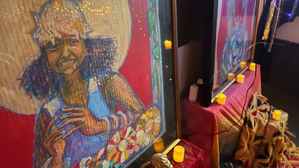When you walk through the exhibit, you move through the major arcana in order with a guidebook written by the artist. Throughout the space, there are cozy nooks to sit in and small altars with symbols that match the art pieces showcased throughout.