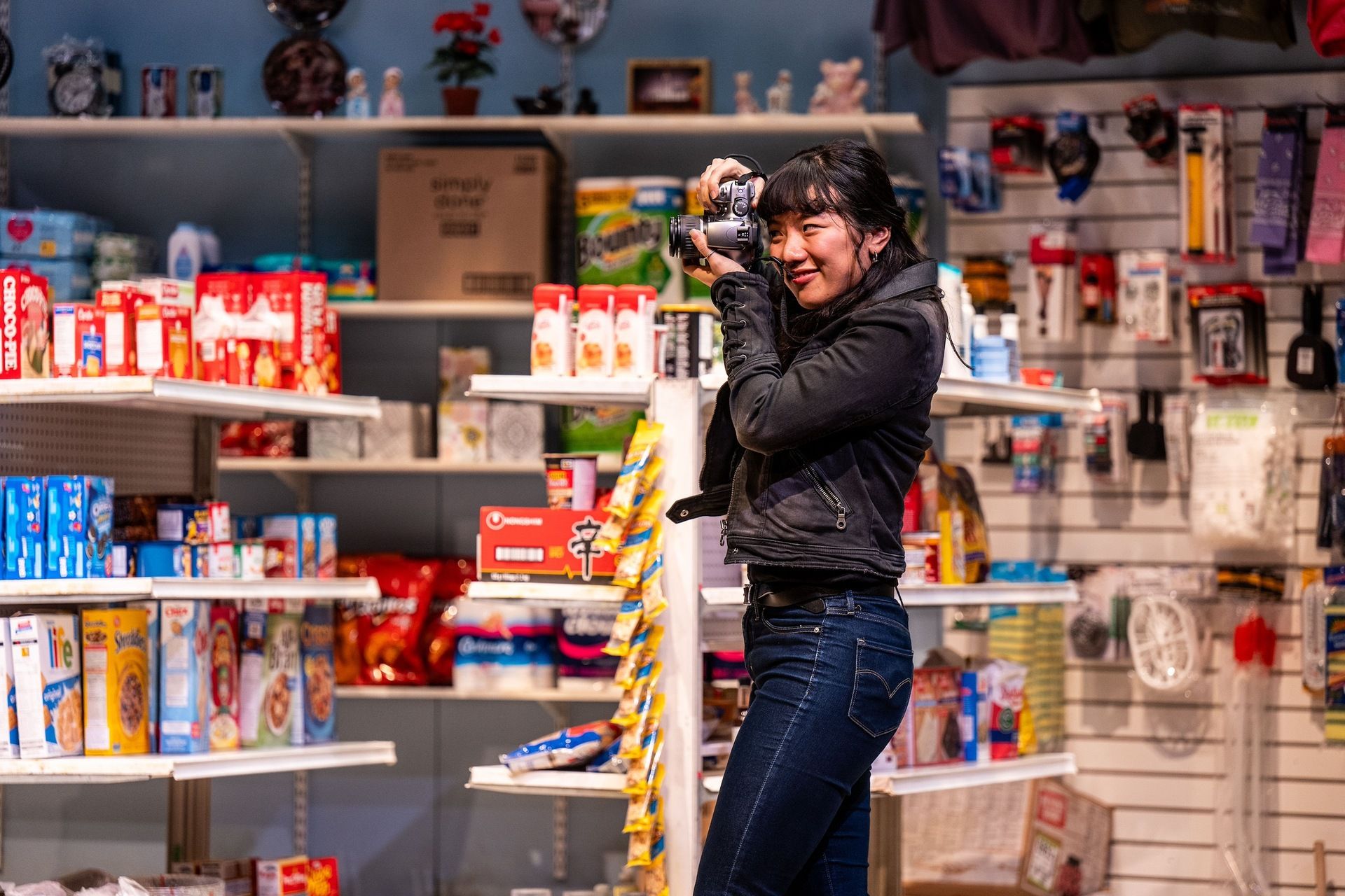 The ACT staff recognized how strongly this play might resonate, so they sent out San Jose photographer Tasi Alabastro to highlight San Francisco's immigrant-owned businesses. Images of store owners were sprinkled around the lobby, framed by red plastic grocery baskets. The owners of cherished stores like Japantown's Woori Food Market and Ted's Market and Deli in SOMA, to name a few, smile out into the lobby, reminding theatergoers just how relevant “Kim's Convenience” is. I catch a few of the subjects posing proudly with their pictures, their smiles infectious.