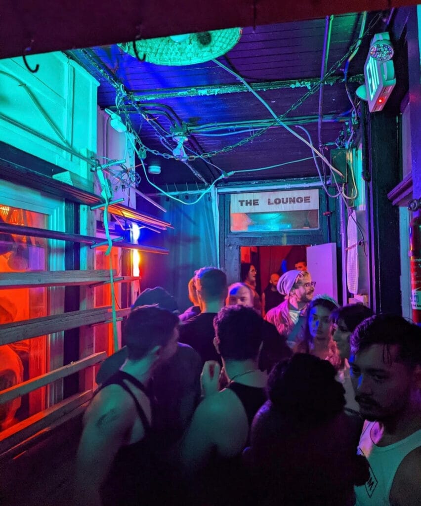 Next they installed neon lights and tasteful decor. “We got a fog machine just for Andrew and I,” said Sam, “and we’d just dance around in our basement and piss off our straight roommates.”