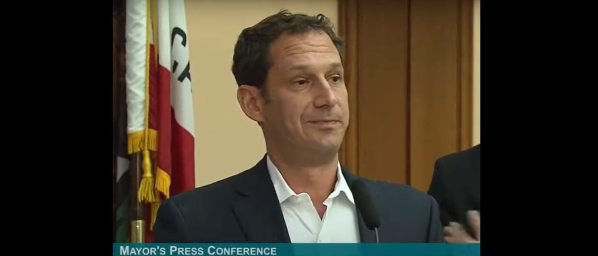Mayor-elect Daniel Lurie at a 2019 press conference for his homeless shelter community Tipping Point. Creative Commons (cropped, centered).