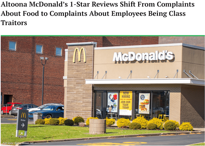 The post Satire Website Accidentally Reports Actual News About Altoona McDonald’s appeared first on Broke-Ass Stuart's Website.