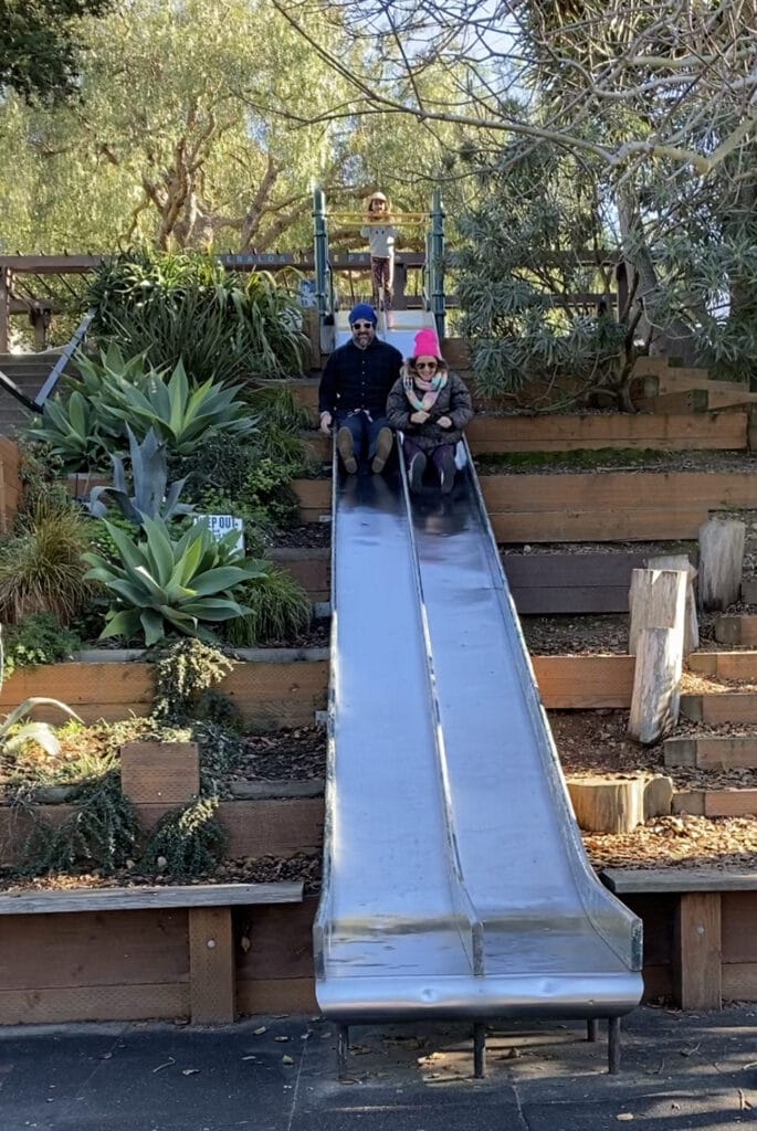 Once the album wraps up, or you’ve come down a bit from your swing high, guzzle that Topo Chico and stroll down hill towards the Esmeralda Street Slides. You asked for fun and nothing delivers fun more than a swing AND slide combo.