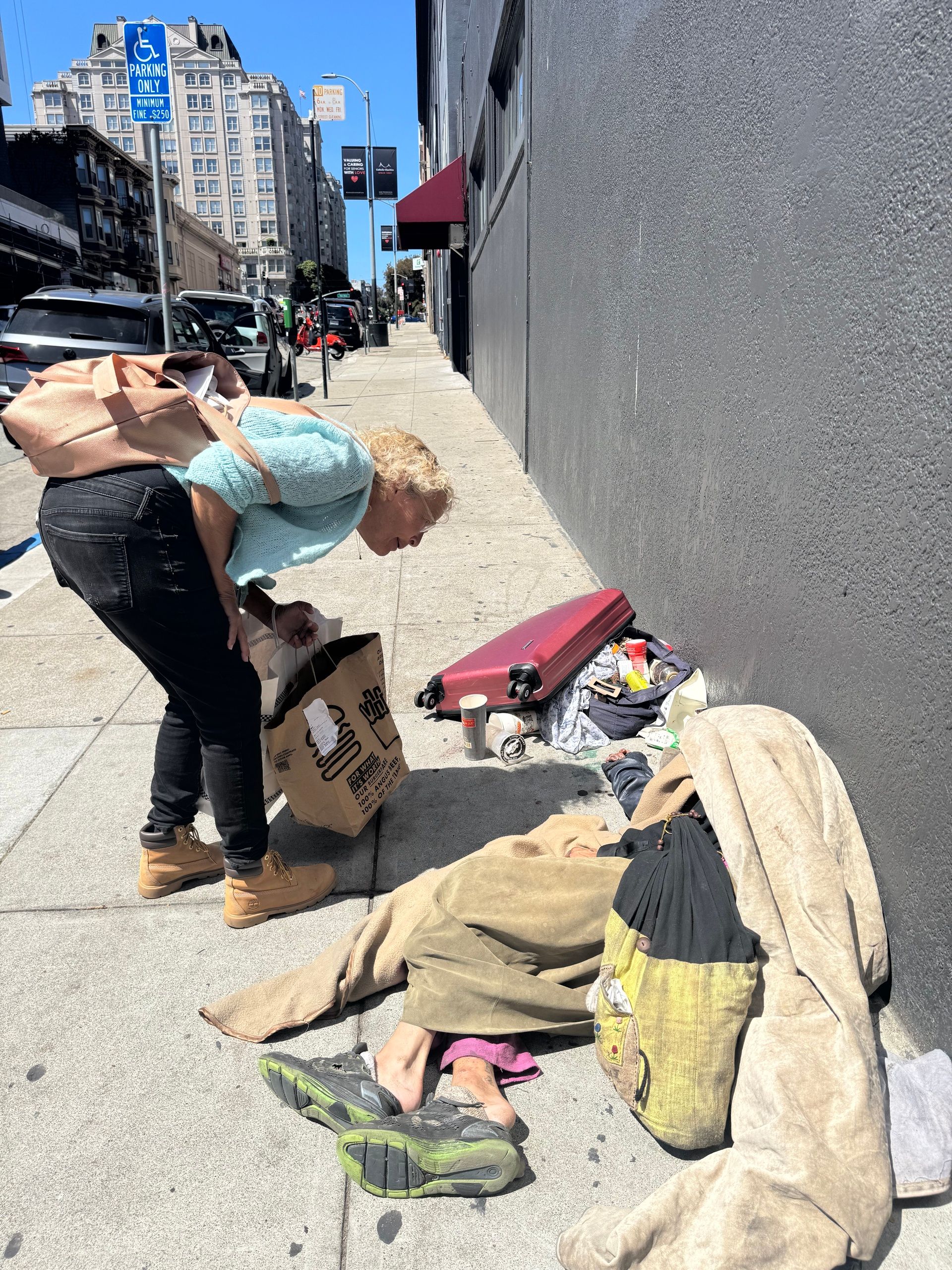 Known around her Polk Gulch neighborhood as the “Pizza Lady,” Andrea started her journey almost a decade ago with one unused pie. In December 2015, she noticed a worker at her neighborhood pizza shop toss an untouched pizza into the compost bin. Wanting to save it, she asked if she could take it to give out to her hungry neighbors — the have-NOTs (Neighbors on the Street), as she calls them. The shop agreed, and from then on, Andrea picked up and distributed unused pizza every day, earning her nickname.