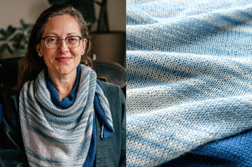 Adrienne modeling avfkw x Jennifer Berg – the desert dweller cowl bundle – also shown the avfkw yarn for the kit – photo Credit for Adrienne’s portrait: Nicola Parisi& yarn photo by Kristine Vejar