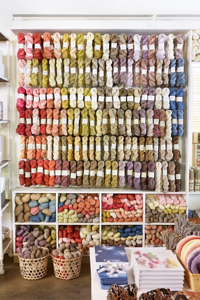 This is the yarn wall at A Verb – can you believe that ll of these colors are naturally dyed?! – photo credit Elysa Weitala