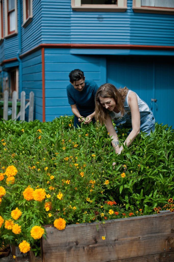 “Kristine grew up in a Minneapolis suburb and yearned to be near the ocean. Adrienne escaped the heat of the Southern California desert and the politically conservative environment to be a part of the vibrant gay community that offered acceptance and support. Mills College was known to be a very progressive and innovative school with a feminist perspective. The classes taught looked critically at how the intersectionality of the many social variables played a part in upholding the tired patriarchy and white supremacy and strived to dismantle them. We both loved what Mills College offered and now cannot imagine living anywhere else. We love Oakland for its diversity, strong arts community, weather, flora, fauna, food, political engagement, and proximity to the ocean and redwood forests.”