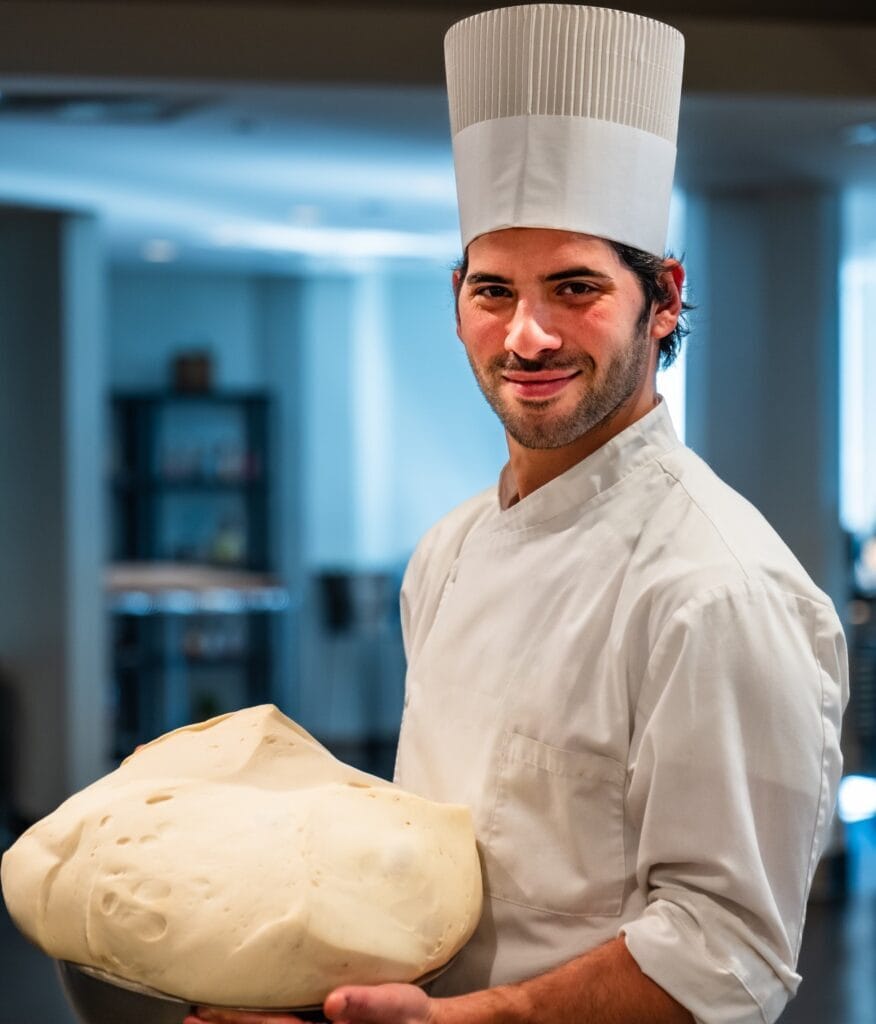 He should know. In Naples, his father has been a baker for 25 years. That includes a lot of panettone baking. He took that training and attended CAST Alimenti in Brescia in 2016. Panettone comes from a mother dough, or what Liguoro and fellow devotees of the traditional recipe call the “pasta madre.” This serves as the bread’s yeast. At each temperature along the panettone’s development, new bacteria develops, conjuring out deeper flavors. Liguoro treats it “like a kid,” giving proper water and temperature to bring out what he calls the ideal Italian product. “It’s very chemical stuff,” he says.