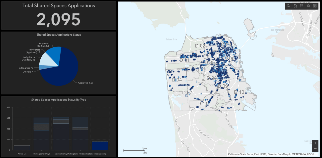 A current look at the Shared Spaces applications tracker, live at https://sfgov.maps.arcgis.com/apps/opsdashboard/index.html#/b1e37820230a4017ae53d645a96c774b