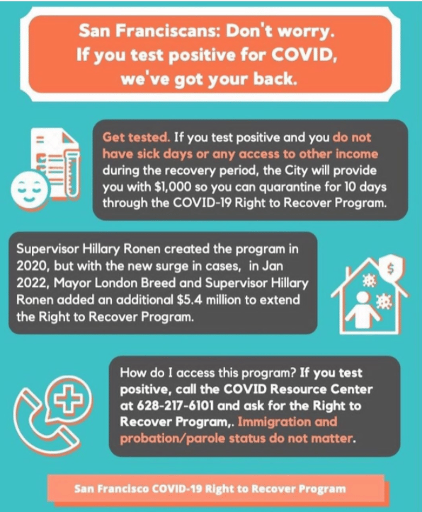 San Francisco’s Right To Recover Program will pay you $1,000 if you don’t have any other access to social safety nets when quarantining after testing positive for COVID.