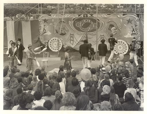 San Francisco has a long circus tradition from the SF Mime Troupe to the Pickle Family Circus to today’s Circus Center training the future of circus on stage, while our ‘street circus’ took improvisational form with the Cacophony Society and the St. Stupid Day Paraders, and even the big wheel racers and the costumed Bay to Breakers, San Francisco’s particular brand of street performance satire. it’s all circus, our circus.