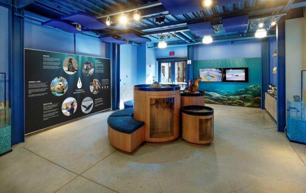 Inside the newly renovated Marine Mammal Center in Sausalito CA.  Renovations to its Visitor Center and Marine Mammal Rescue Dispatch and Life Support Building were made possible by a significant donation from Ken Hao and Kathy Chiao, longtime residents of Stinson Beach.
