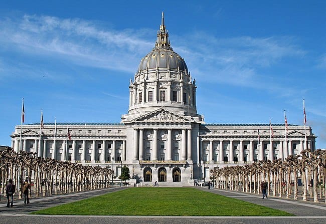 San Francisco City Hall from east end of Civic Center Plaza. (Photo courtesy Wikipedia)