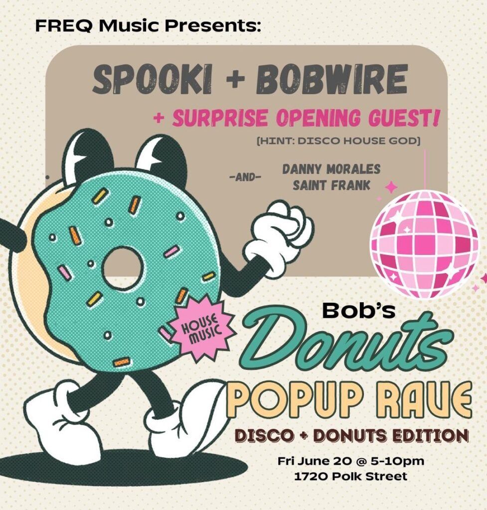 San Francisco’s most iconic donut shop is getting sprinkled with something extra sweet... Join us at Bob’s Donuts (1720 Polk St New Location) for a pop-up rave where sugary vibes meet electric disco grooves. One evening only. Just donuts, SF history-making, and dance floor heat.