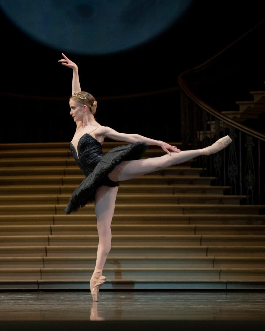 The roles of black and white swans are played by the same dancer. As the white swan, the ballerina must dance with the excitement and grace of a freshly freed prisoner, submitting to love. She then has to switch roles, don black down, and dance as more predator than prey, going owl out to seduce the young prince, to seal his dark fate.