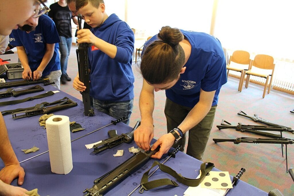 Young people learning to clean their rifles. Creative Commons photo by SwissBloke via Wikimedia Commons.