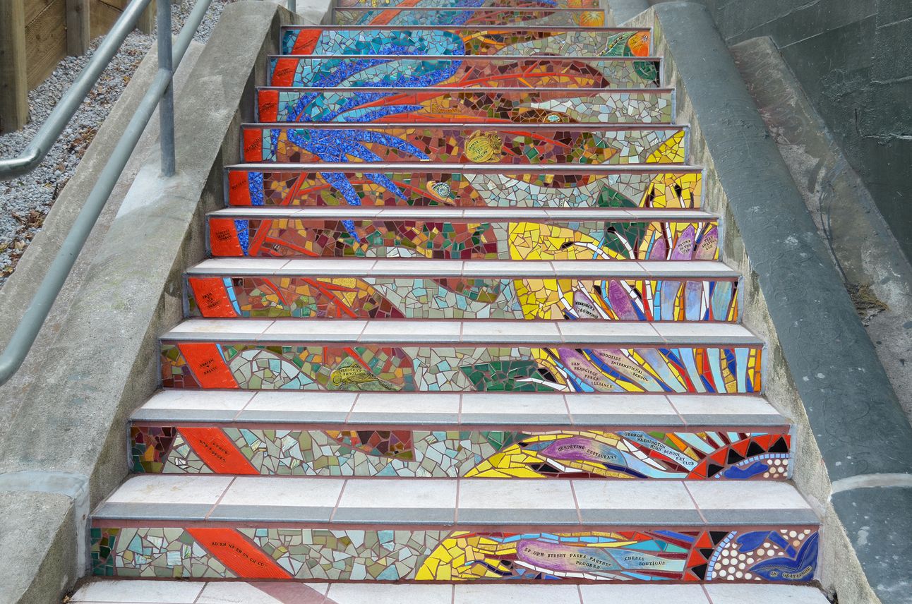 Detail of the Vallejo Capital Street Stairs designed by Aileen Barr and Collete Crutcher – photo from Visit Vallejo