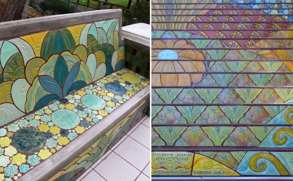 “I moved to the Bay Area in 2002 and before that was working as an artist in Ireland for 10 years. I studied ceramic design in Dublin and once I graduated I was unsure what I wanted to do. I was in New York in the 80s and discovered architectural ceramics and tile making there and immediately knew that that’s what I wanted to pursue! I was intrigued by the idea of making lots of small things that can be put together to create something quite large.”Barr’s commissioned pieces span across the entire Bay Area. The commission for the 16th Avenue mosaic stairs with Crutcher was her second commissioned piece but it helped propel her local public art career.