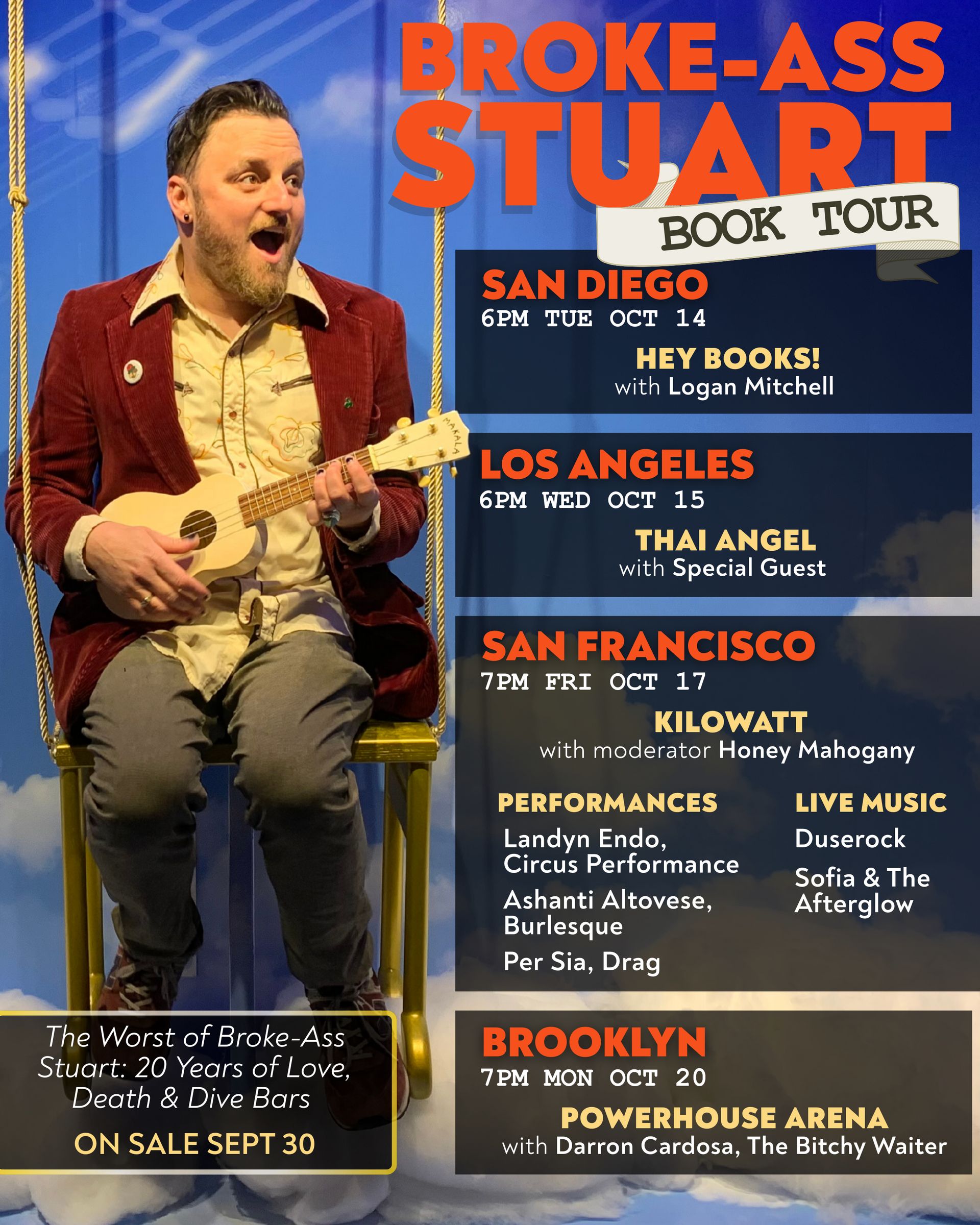 Come hang out with me as we celebrate The Worst of Broke-Ass Stuart: 20 Years of Love, Death, and Dive Bars! This book is 21 years in the making! Itβs gonna be an epic night with burlesque, drag, a circus performer, live music, a DJ, and a book reading + Q&A!