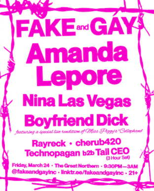 FAKE and GAY ft. Amanda Lepore LIVE, Nina Las Vegas + more!3/24 | The Great Northern | 119 Utah St, SF | 9:30 pm | $15-30