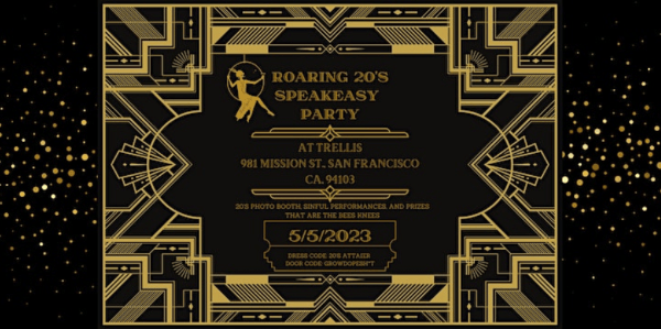 Roaring 20’s Speakeasy5/5 | Trellis | 981 Mission St, SF | 4-9 pm | $5-45
