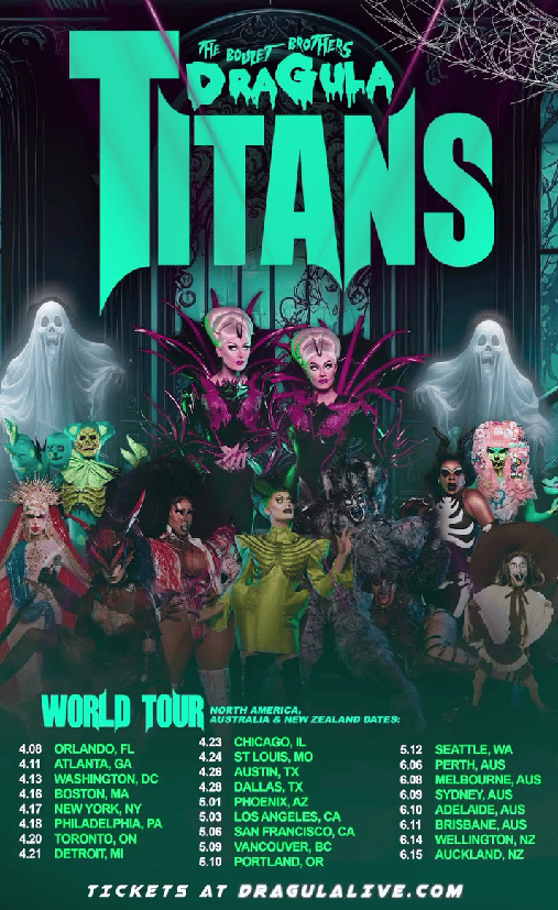 You’ve watched these Titans battle all season long, now come see our winning Supermonster LIVE! The Boulet Brothers’ Dragula: Titans is hitting the road and bringing the haunts and screams to a city near you. At each show the Boulet Brother’s will be joined by their newly crowned Supermonster, the Titan of all Titans. You won’t want to miss a minute of the horrifying and deadly tricks the Boulet Brothers have up their sleeves, and you never know which of your favorite ghouls you’ll see along the way.