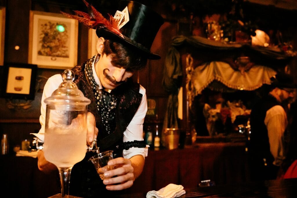Dapper bartender serves absinth – photo by Vita Hewitt