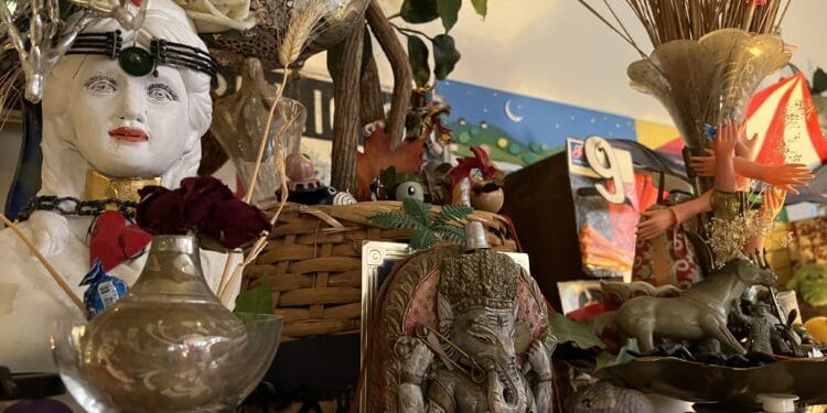 Beyond the array of strange and wonderful books, there are collections of knick knacks that take up nearly every other nook and cranny. From collections of vintage Santas to beautiful glittering altars filled with little plastic toys, if you’re not pulled in by the books then you would certainly find yourself mesmerized by all of the bits and bobs surrounding you.