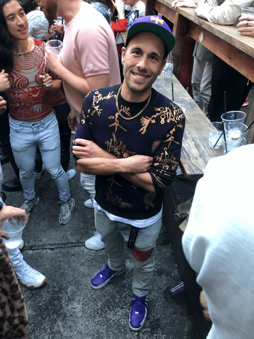 Here it was where I spotted Kev, looking positively royal in his purple theme ensemble anchored by a pair of distressed jeans with flight patches I could have literally stolen off his body and worn myself. “Is it too much purple? It’s too much purple huh” – he lamented to me, a declaration which I, like a Mistress, would not allow. Kev’s purple perfection ended up being my first photo of the event, a fantastic style foreshadowing of the epic night to come.