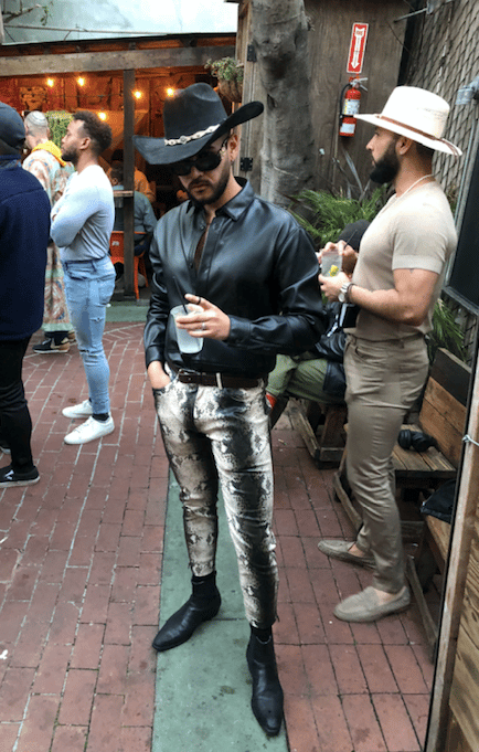 The good thing about taking pics at a Queer party is how immediately responsive and accommodating the crowd is when you say, “Hold up! I have to take a pic of his outfit!” Instantly, in a wave of collective cognizance, the crowd parts and allows me to take as many shots as I need. Even the oblivious folks trying to cross the dance floor like a Chinook salmon dolphin jumping upstream would patiently wait, taking sips from their quickly deteriorating paper straws to keep their drinks from spilling everywhere, as if it was some sort of silent group agreement that his outfit was indeed, fabulous.