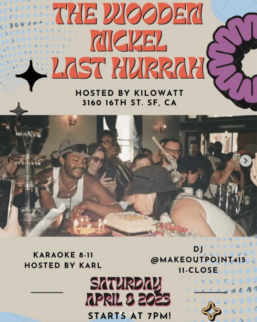 The saddest part to me is going out this way. I would love nothing more than to celebrate and raise a glass with you all. So let’s do it! Just because we can’t do it at the Nickel, doesn’t mean we can’t come together one last time. Kilowatt has generously offered their space to house The Wooden Nickel’s last hurrah. It will be on Saturday April 8th starting at 7pm. I hope to see you there.