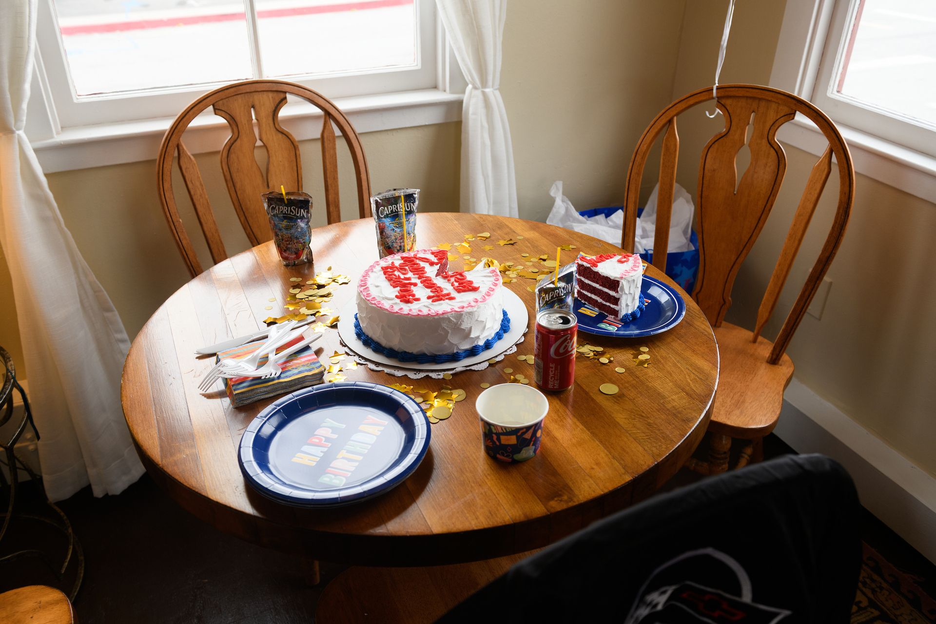 Inside the Guardhouse, next to the phone, is a recreated living room, a miniature home, a birthday cake on the kitchen table, one slice on a plate, fork ready, but uneaten. A tv playing softly in the background, a jacket casually draped on a chair. A lived-in space made with love, now vacant.