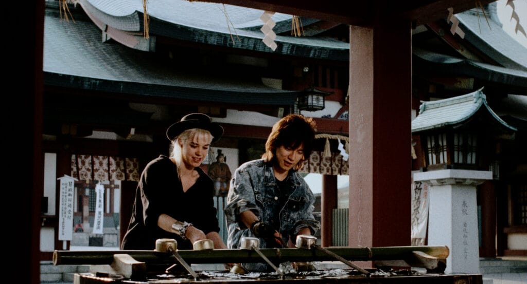 Thanks to the 4-Star Theater, that problem is corrected. On August 17 and 18, 2023, the theater will host showings of the 35th anniversary 4K Restoration of Kuzui’s first film “Tokyo Pop,” which folds Japanese rock and roll into a Western story. It begins in 1980s New York City. College dropout and wannabe rock and roll singer Wendy Reed (Carrie Hamilton) leaves her boyfriend’s band and America to try establishing her musical career in Japan. But her spontaneous trip to economic bubble-era Tokyo soon takes a turn towards regrettable desperation. That’s when Wendy’s path accidentally crosses that of wannabe Japanese rocker Hiro Yamaguchi (Diamond Yukai aka Yutaka Tadokoro). Hiro and his band have not managed to catch a career-defining break. Wendy and Hiro’s relationship goes from a bad first encounter to Wendy’s joining Hiro’s band (and becoming his lover) to unexpected fame. But is fame what either Wendy or Hiro need to fulfill their rock and roll dreams?