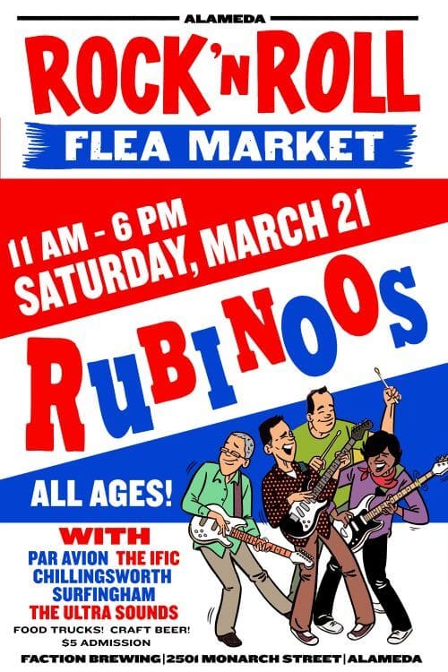 100 vendors selling records, music memorabilia, musical instruments, vintage clothing, tiki/Hawaiiana, handmade jewelry & much more! Live music by The Rubinoos, Par Avion, Chillingsworth Surfingham, The IFIC, and The Ultra Sounds. Food & Drink by Satay By The Bay SF, Crazy Block Cheesecakes, Swahili Spot, Coba Coffee, and more! Craft brew made on the premises by Faction Brewing.