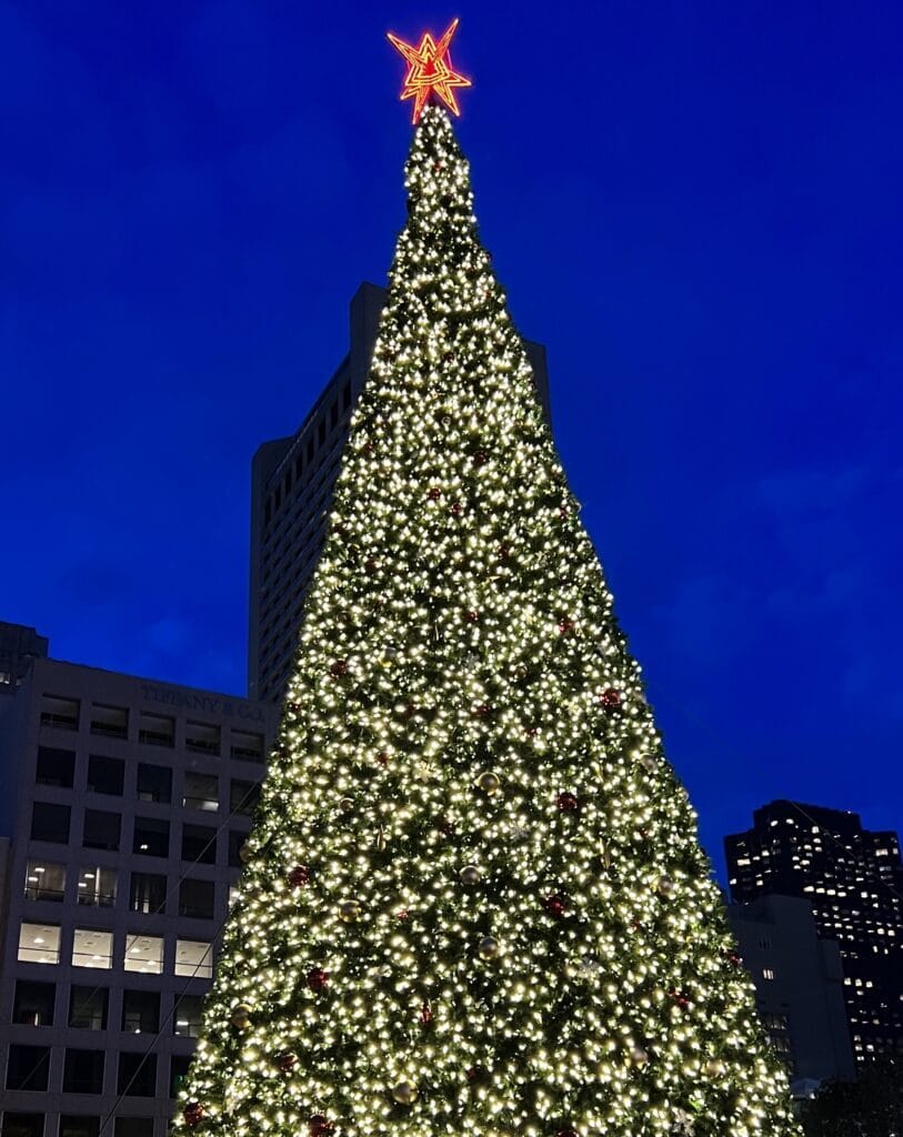 But it was a stellar night in Union Square. I made it there at about 5 p.m. and the city’s skating rink was lit up with nervous-kneed teens, cafe tables filled like they were stationed outside the Shakespeare and Company shop. Cable cars chugged up Powell Street and the hotels and department stores were buzzing. It seemed like tons of people were coursing through the area at any given moment, and it struck me as surreal. As someone who lives in the city, I tend to write Union Square off as boring, manufactured fun. This felt exciting, though, like if I left the scene for too long I’d miss some great event, possibly San Francisco itself rising from a much-conjured pyre.