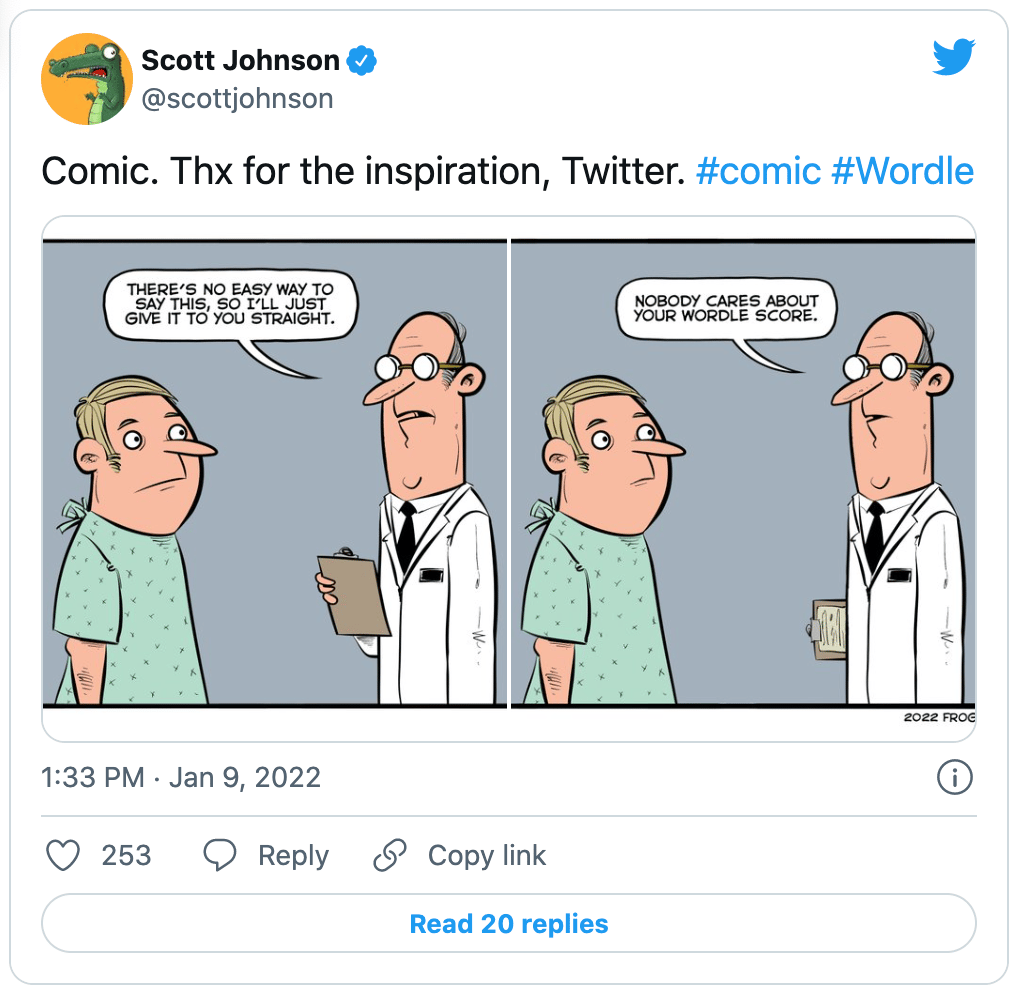 I honestly think that most folks who play Wordle will end up in a similar place as myself after the initial excitement about the game wears off. Some will keep playing and share scores a little less publicly. Others will maybe lose their interest.